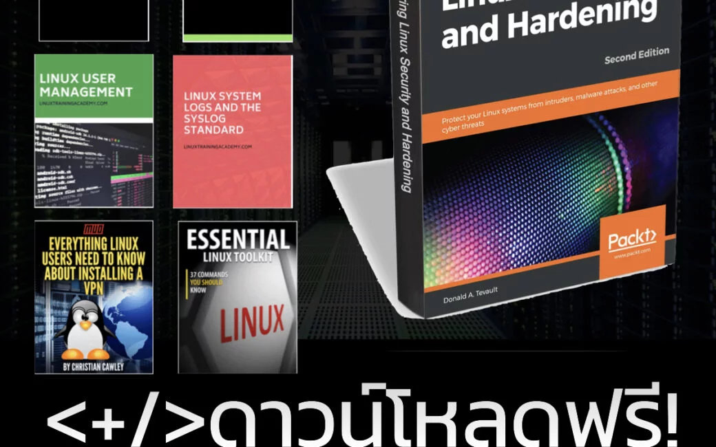 เว็บไซต์ Packt, Linux Training Academy, How-To Geek และ MakeUseOf ร่วมกับ TradePub.com เปิดให้ผู้ที่สนใจดาวน์โหลด eBook เรื่อง Mastering Linux Security and Hardening – Second Edition ปี 2020 ได้ฟรี แบบ FREE for a Limited Time! และได้สรรหามาให้เพิ่มอีก 6 เรื่องครับ ประกอบด้วย